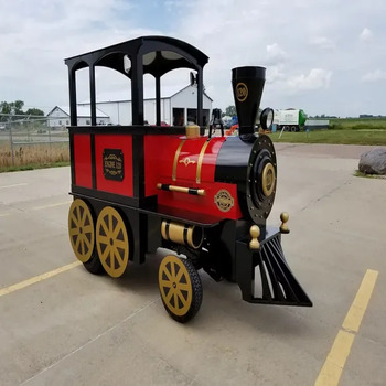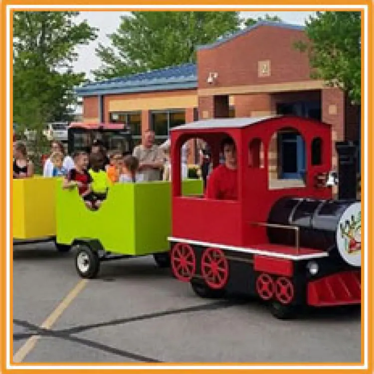 Rent our Premium Gas Trackless Trains today! This trains can be used outdoors only and in parking lots or your neighborhood. This train must be driven on a smooth flat surface. This train rental is perfect for holiday parties and corporate events because it is so gorgeous and authentic! This trackless train must be used on concrete or asphalt.